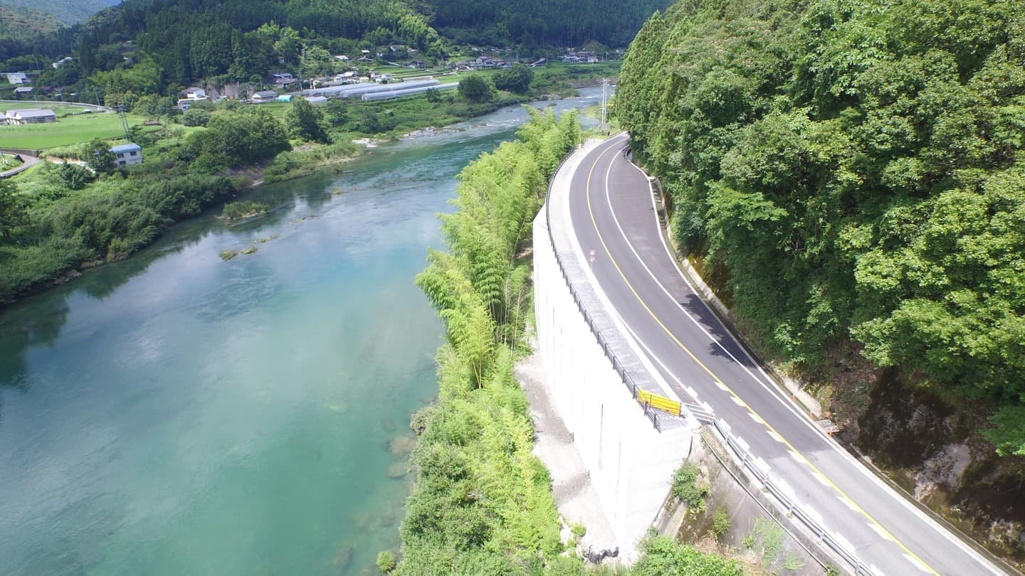 河川工事では、吉野川河川改修工事や早明浦ダム斜面対策工事を通じて、洪水防止や斜面崩壊防止に取り組み、地域の防災力を強化しました。水資源機構からの評価も受け、優良工事表彰を獲得しています。