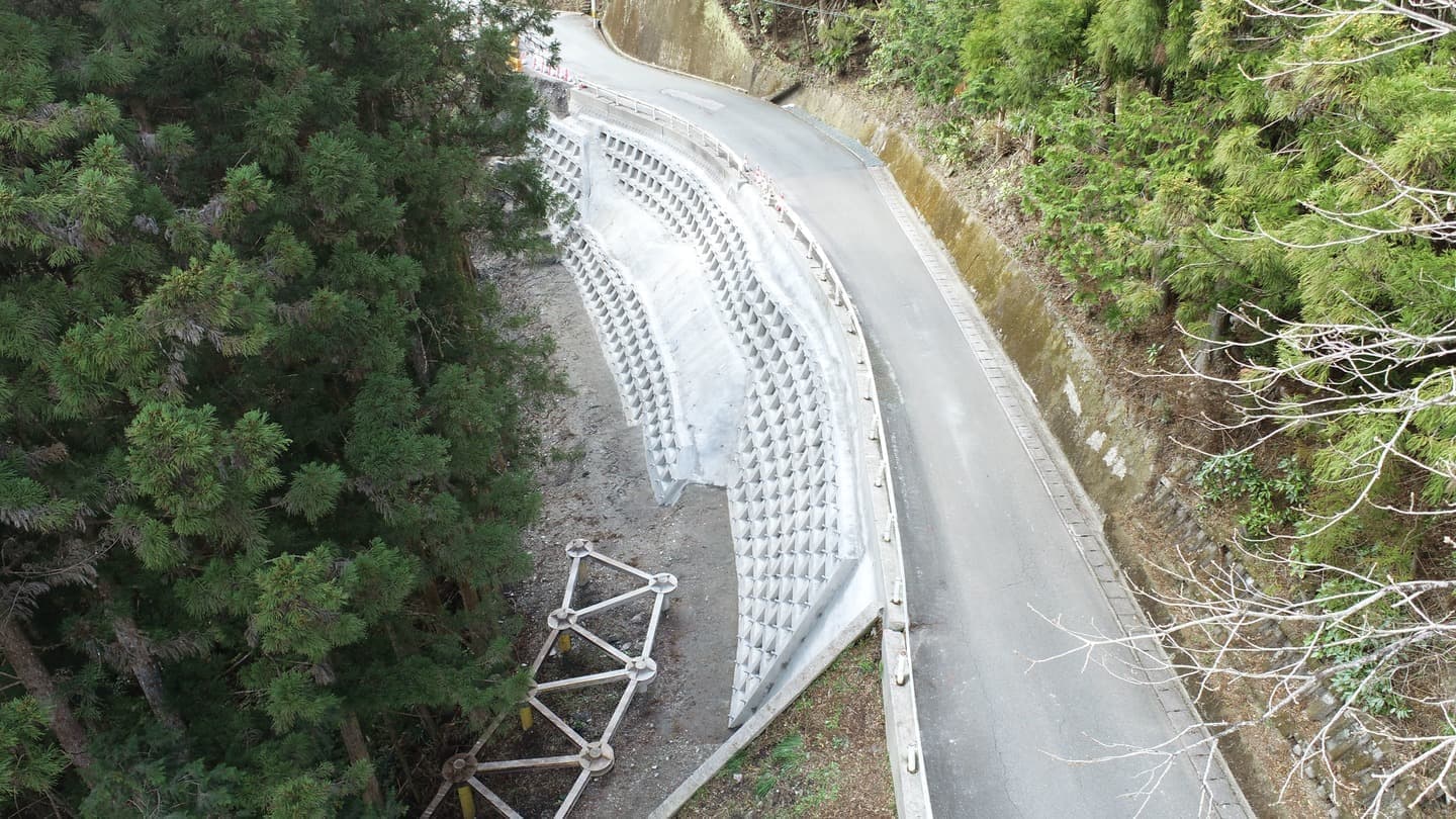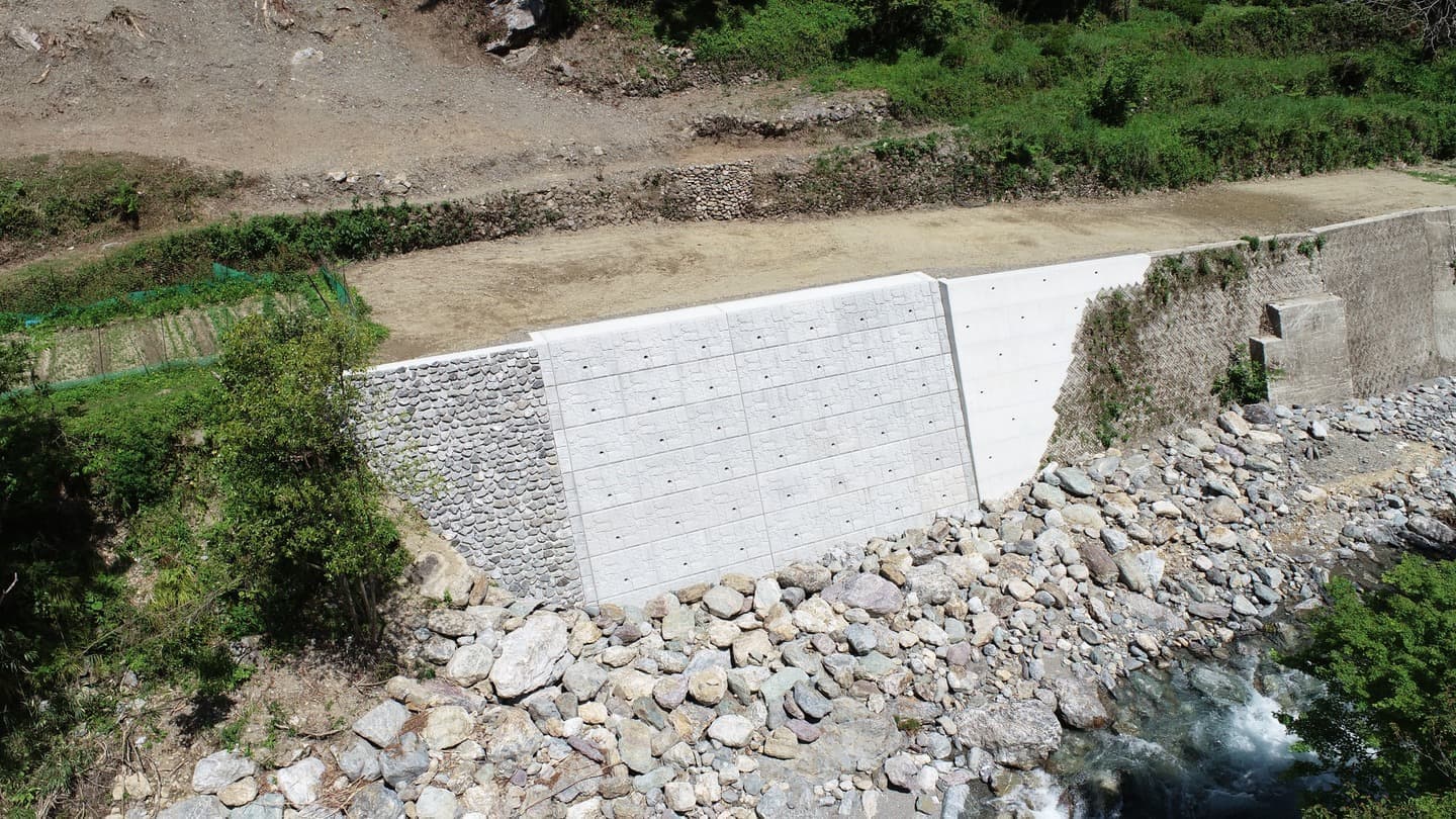 砂防工事では、嶺北地域で砂防ダムを構築し、土砂災害のリスクを低減。最新技術を採用し、環境負荷を抑えながら命と財産を守るインフラ整備を実現しました。
